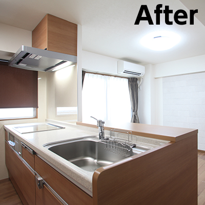 30年以上前に購入したマンションでしたので、色々な面で老朽化しておりました。思い切って全室リフォームを行いました。特にキッチンは壁面タイプだったものを、対面型にしたところ、料理をしながら会話ができたり、家族のコミュニケーションも増えました。 壁も床も新しく綺麗になり、とても気持ちの良い毎日をおくれております。(埼玉県 G.S.様)