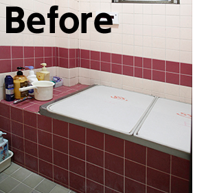 ユニットバスがまだ少なかった頃に造ったタイル式のお風呂でしたが、ようやくユニットバスに交換しました。まず掃除がしやすいですし、バスタブも床も汚れにくいので、楽です。何よりお湯が冷めにくい構造のようで、暖かいお風呂に家族全員つかっています。(渋谷区 S.S.様)