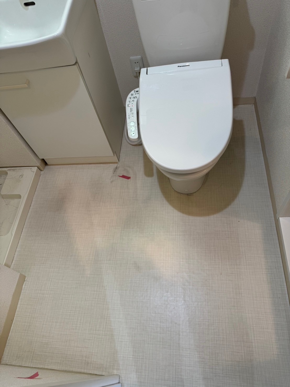 【お役様の声】洗面所のクッションフロアーが経年劣化により見た目も悪くなってしまい張替えをお願いしました。毎日使用するところなので清潔に綺麗にしたいですよね。作業時間も2時間程度で終わらせてもらい満足しています。【江東区M様】