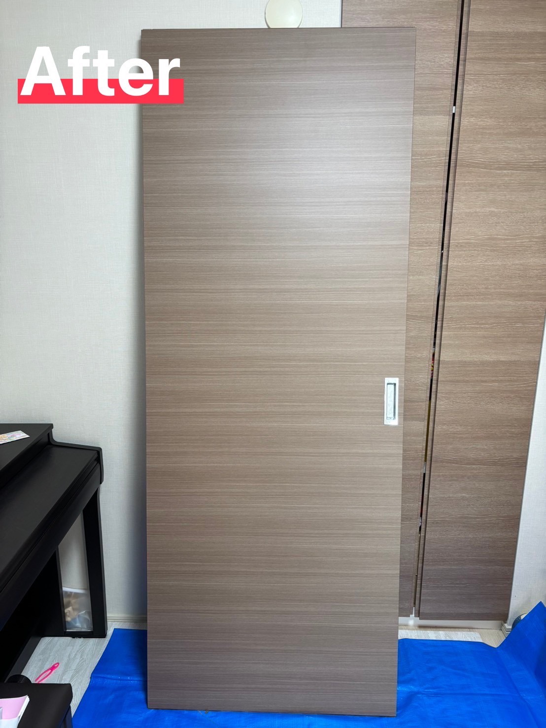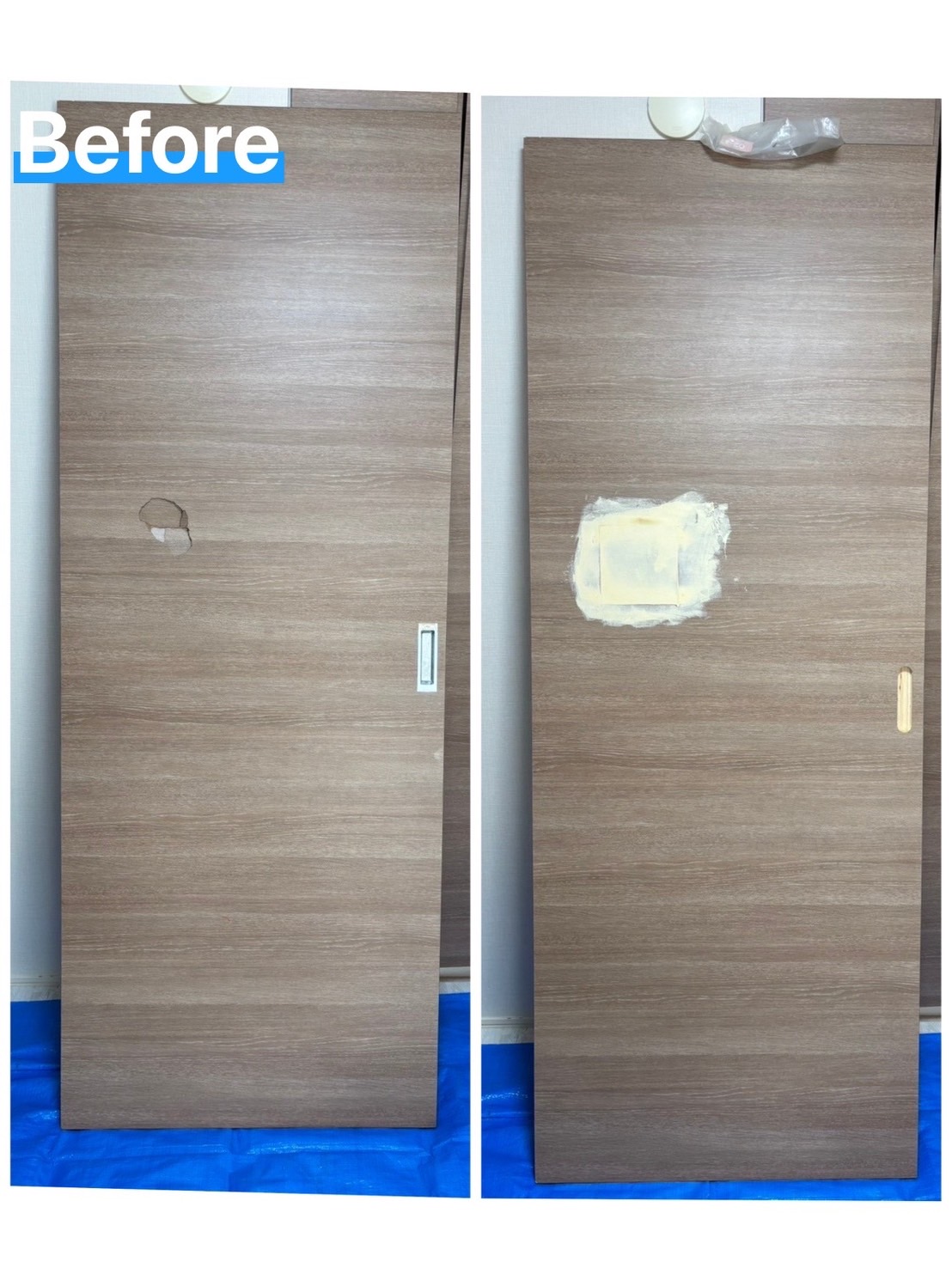 室内扉の穴補修及びフィルム施工を行いました。