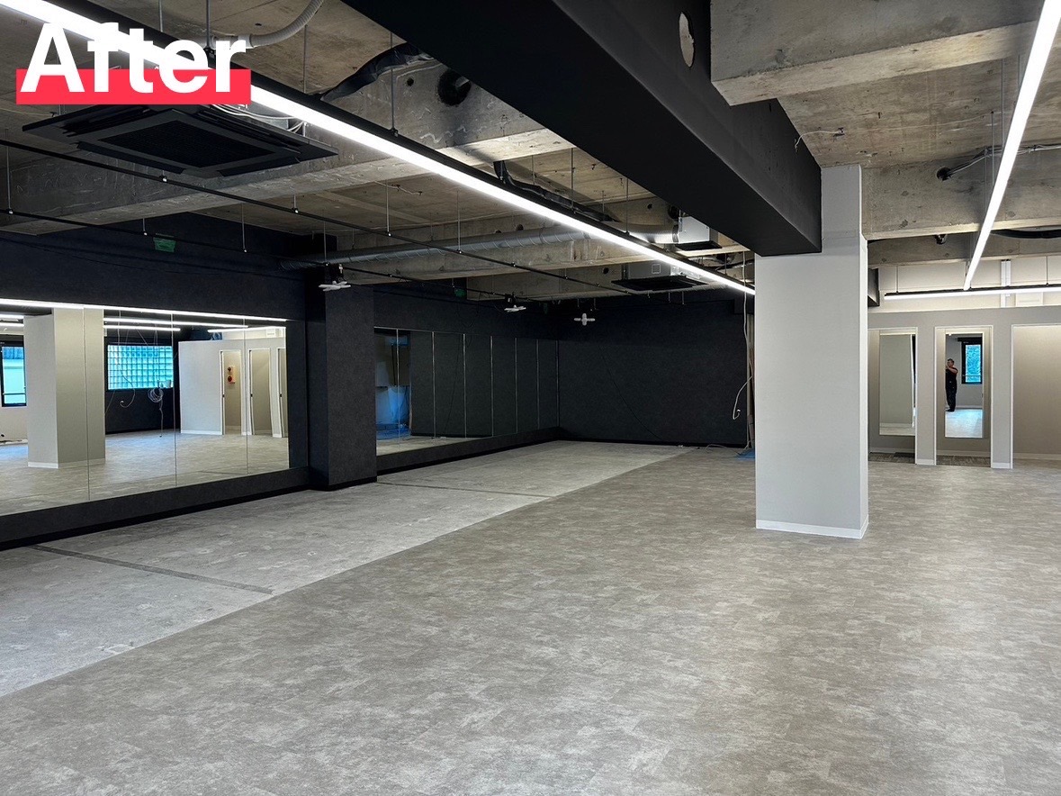 約200㎡のスケルトンから黒を基調に作り上げました。後はマシーン設置で完成です!