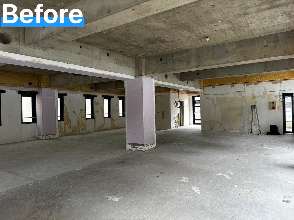 会社近くのビル改修工事のご依頼を頂きました。弊社は、内装工事に限らず、屋根、外構工事も承っております。ビル塗装、屋根修理、万年塀解体工事など何でもご相談ください。