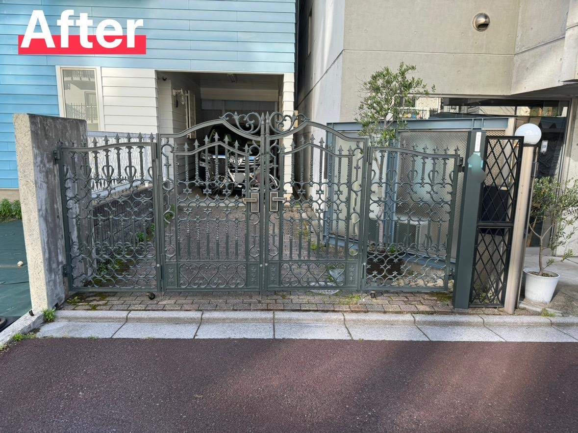 長年お家を守っている家の顔である門扉が綺麗になったと大変ご満足を頂きました。次は外壁をお願いしますと仰って頂きました。