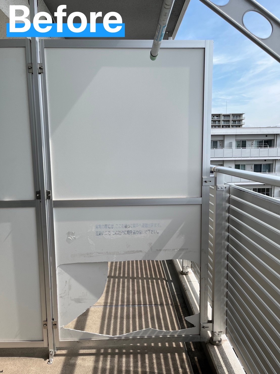 小さな工事ですがお困りになっている方が結構多いのがこの隔て板です。隣家とのトラブルを避けるためにも早急に対応が必要です。