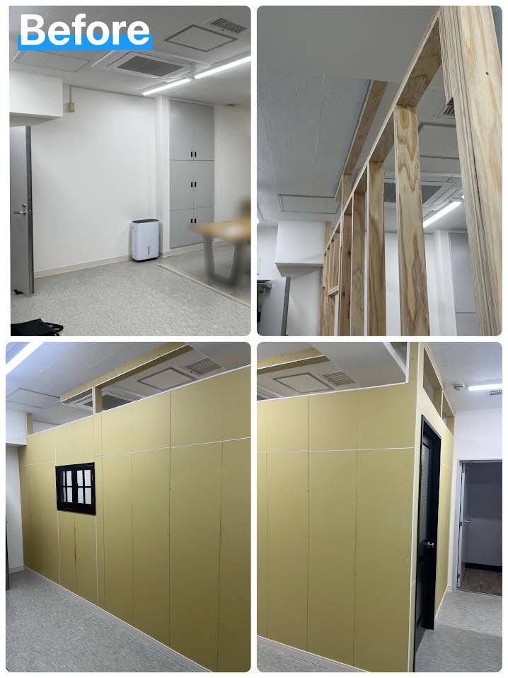 ワンフロアの会議室に間仕切り壁造作工事のご依頼を頂きました
