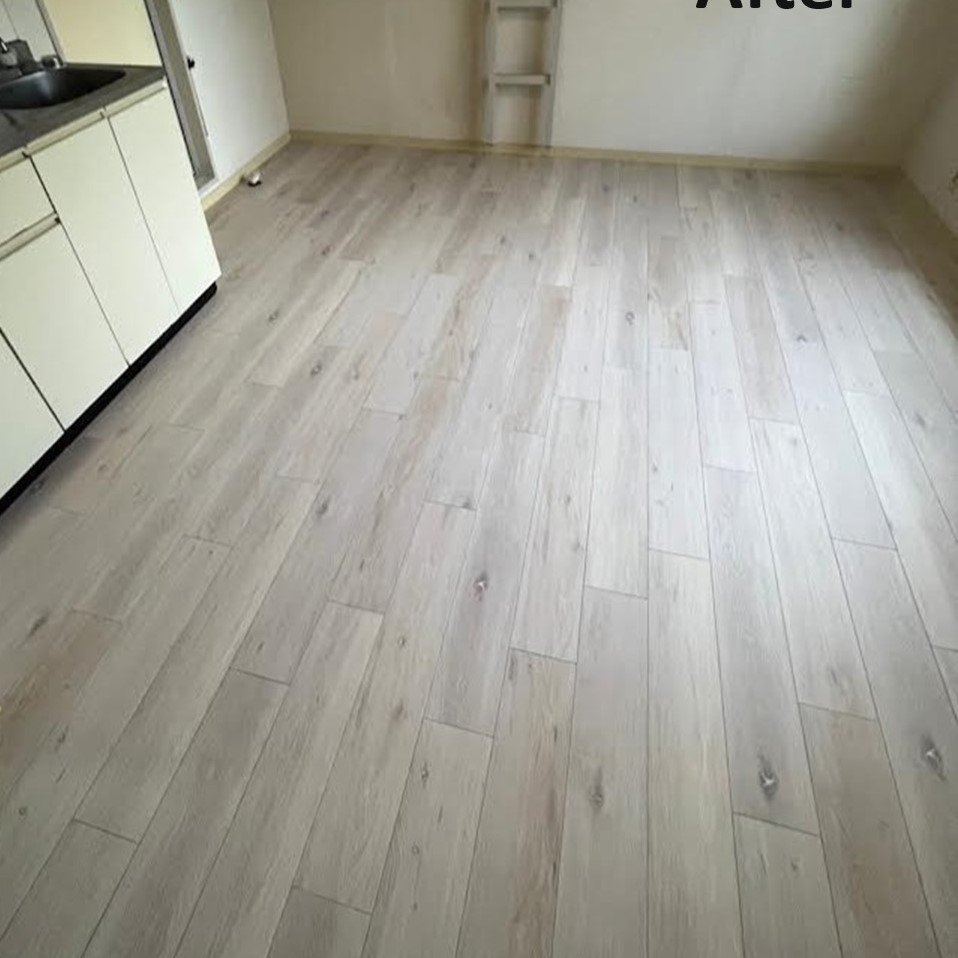 フローリングも汚れが目立つようになり張替えも検討していましたが、費用面での相談も有りフロアタイルで仕上げました。部屋も明るくなり満足頂けました(中野区U様)工事期間1日