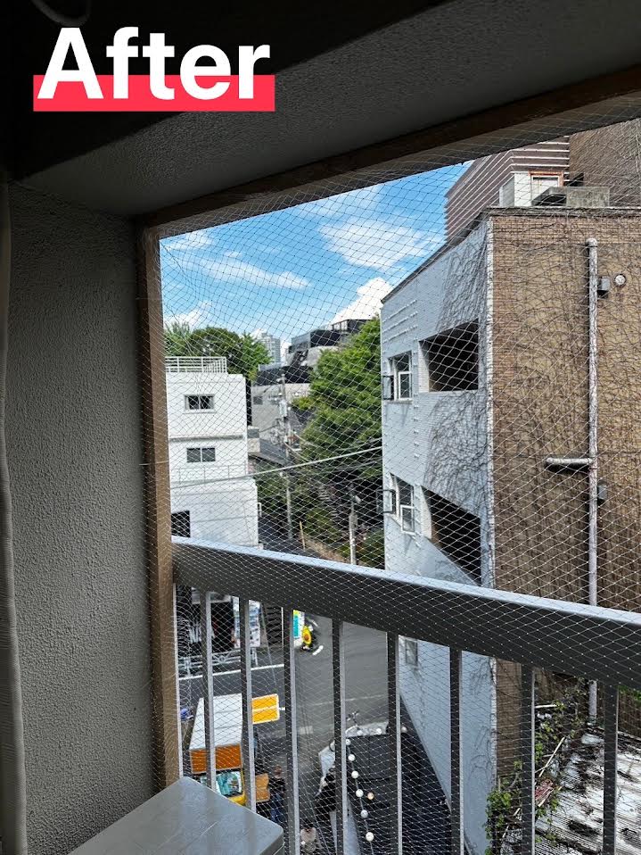 ベランダにハトが住み着いてしまい、"アレ"を落とされて困っていました。躯体に穴を空ける訳にもいかず相談しました。ベランダに四方枠を取り付けて、ネットを張って頂きました。もうハトに悩まされることがなくなり満足です。(渋谷区)