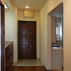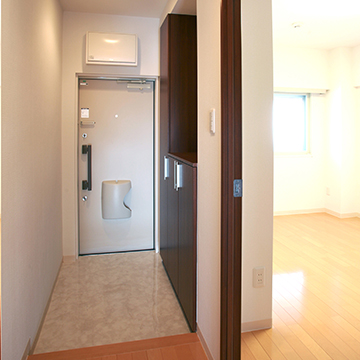 いろいろ考えましたが、玄関のドアも交換しました。それまでの古めかしく重いイメージのものから、明るい色の新しいものに交換。部屋のイメージも変わりました。