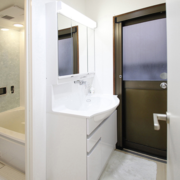 浴室の水回りを交換しました。洗面化粧台が真っ白になり、横幅も広く使いやすくなりました。照明も部屋も明るくなり快適です。