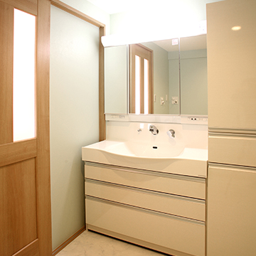 浴室と洗面化粧室を全面リフォームしました。浴室はもちろん、ドアや洗面化粧室の壁、床も張り替え洗面台も新しく、照明も明るくなって、全体が気持ち良くなりました。
